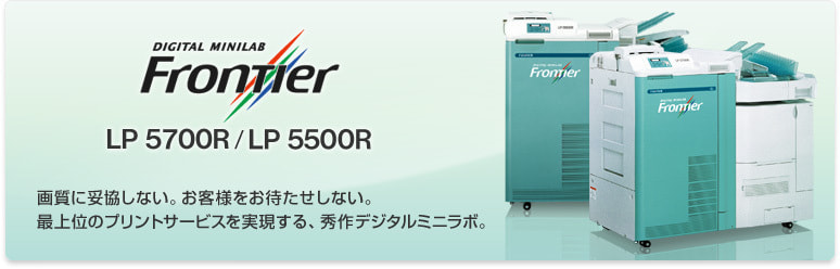 その秘密は、お店に設置した大型プリンター「フロンティア」のレーザー露光方式による高画質プリントで一枚一枚丁寧に色補正を行いプリントしております。